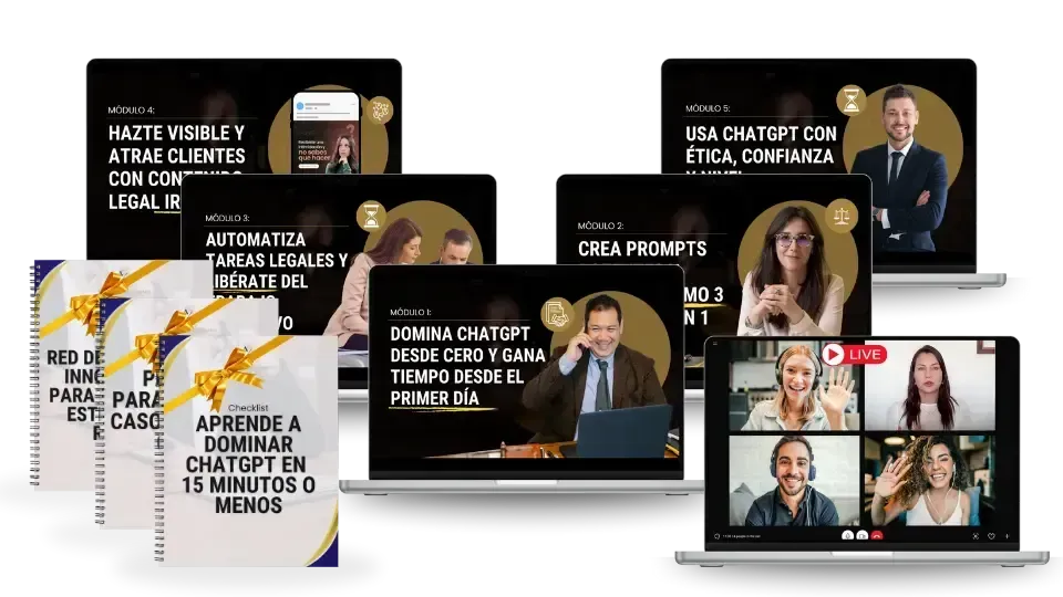 Sí. Este curso te enseña cómo automatizar tareas repetitivas como la redacción de contratos, resúmenes jurídicos y correos, ahorrando horas de trabajo cada semana. Además, aprenderás a crear contenido legal para blogs y redes sociales que te posicionará como autoridad en tu área.